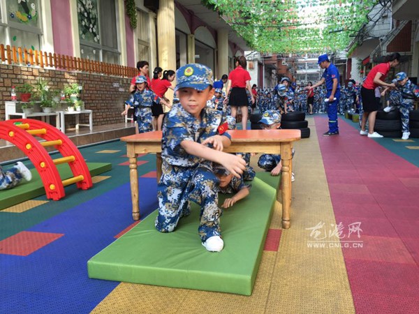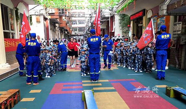 9月28日,蓝天幼儿园邀请蓝天救援队龙港中队为幼儿开展军训拓展体验活动。活动中,伴随着教官一声又一声响亮而有力的口号声,换上统一迷彩服的孩子们个个化身小小战士,认真地完成敬礼、军姿、踏步等动作,还进行户外拓展训练。