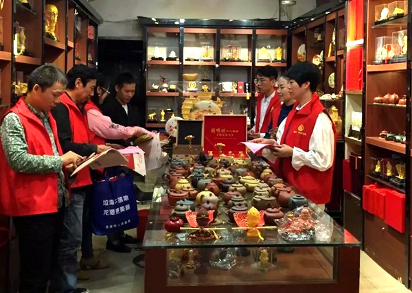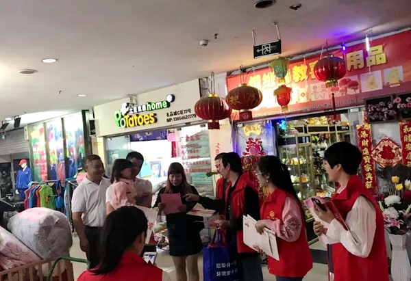 为落实苍南县正式实行婚丧喜庆新规,仪邦集团、集团党委十分重视“移风易俗”、“拒绝车窗抛物”、货物不随地摆放、节约用电、用水、不乱丢垃圾等文明新风尚的宣贯。10月16日下午,由仪邦集团党员、职工组成的志愿者20多人,身穿红马甲,穿梭在龙港礼品城市场商铺、廊道,向业主发放220多份宣传单页,给500多位经营户做宣传。掀起创建文明礼品城“文明风尚我先行”的序幕。