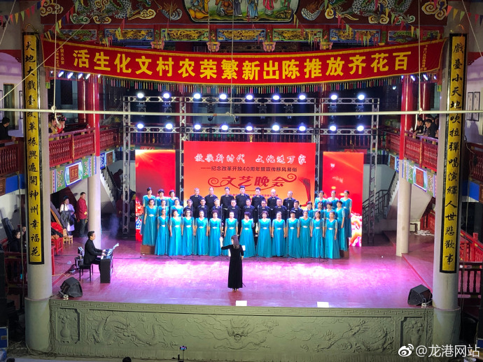 1月1日晩上6点30分由龙港老干部党校、龙港老年大学主办,龙港阳春艺术团、龙港常青合唱团承办,龙港镇综合文化服务中心、苍南县乡村艺术团龙港总团、龙港镇下水门村两委协办的的放歌新时代 文化进万家-纪念改革开放四十周年暨宣传移风易俗文艺晚会在下水门村文化礼堂举行,为广大村民献上的一场新年乡村音乐会。江山社区、龙港老年大学领导班子和下水门村两委成员以及400余名村民观看此次演出。