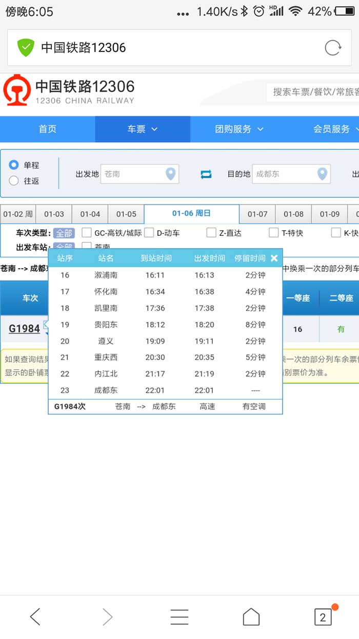 从本月6日至30日,该趟高铁由苍南站至成都东站的车票尚有余票,可以预定。