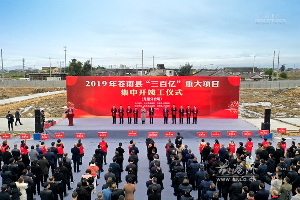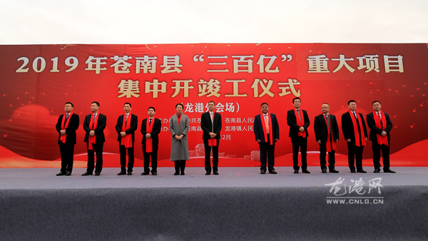 龙港分会场仪式由县委常委、镇委书记陈为来主持,镇委副书记、镇长陈显宏介绍2019年龙港镇集中开竣工项目情况。据了解,2019年苍南县“三百亿”重大项目集中开竣工仪式全县设1个主会场,同时,在龙港等地分设6个分会场。全县集中开竣工项目共有66个,总投资超300亿元,龙港作为全县发展的主阵地,攻坚奋战的排头兵,此次共有龙港环河村城中村改造项目、龙城中医院迁建工程等10个总投资 35.72亿元项目开工;龙港十二小、天成时尚小微园等6个总投资21.46亿元项目竣工。我镇16个项目集中开竣工,不仅奏响了全镇“五争攻坚、提质升级”行动的序曲,也为龙港和苍南经济社会高质量发展注入强劲的动力。