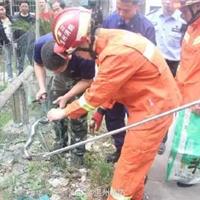 据了解,报警人路过发现蛇肚子鼓鼓的,猜测蛇吃多了游走时被绳网给卡住了。