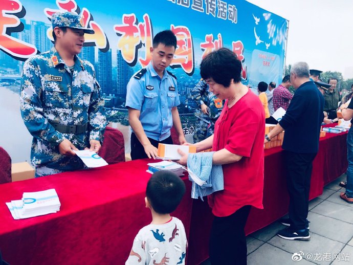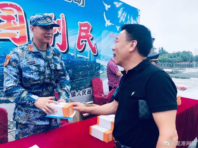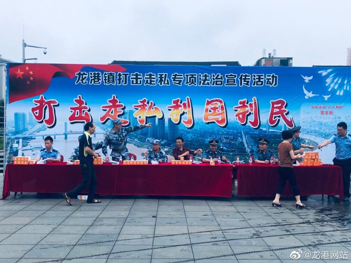 6月23日,龙港镇人民政府组织镇经发局(打私办)公安分局、江滨派出所、镇综合执法局(运管)、海上反走私巡查队在金河广场、舥艚渔业码头开展打击走私专项法治宣传活动。镇委委员、副镇长叶德腾率镇经发局局长肖若峰到场参加发放宣传手册和宣传品。