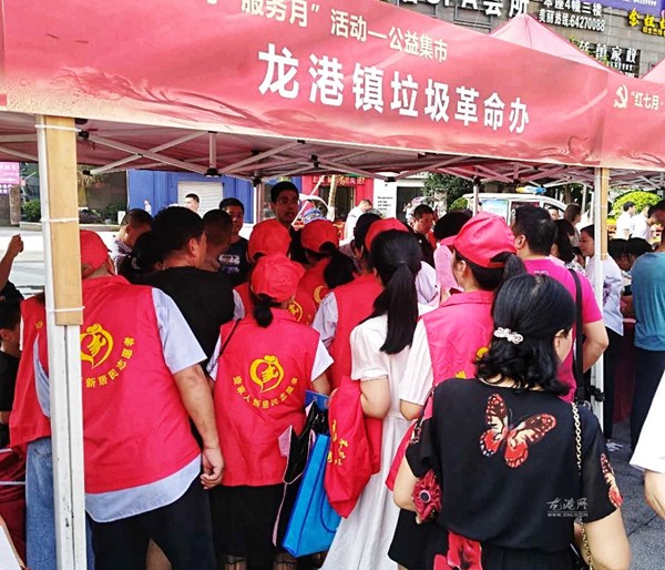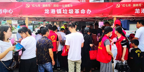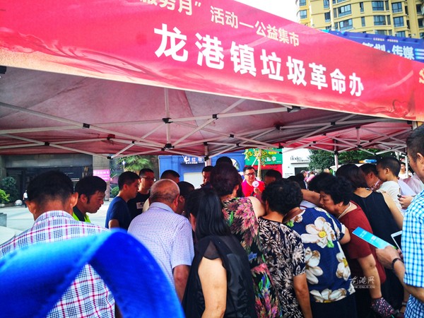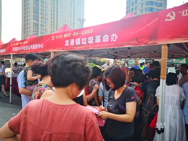 为了增强龙港居民对垃圾分类知识的了解,积极引导其参与到垃圾分类的行动中来,龙港镇垃圾革命办联合执法局以“红七月 服务月”活动启动仪式为契机,在龙港财富广场设摊开展了主题为“垃圾分类我先行”的宣传活动。