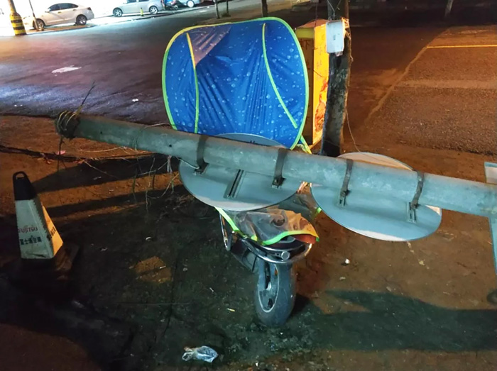 有市民反映称:日前,龙港西一街343号门口电线杆倒了,砸到电动车,希望有关部门出面监督处理。