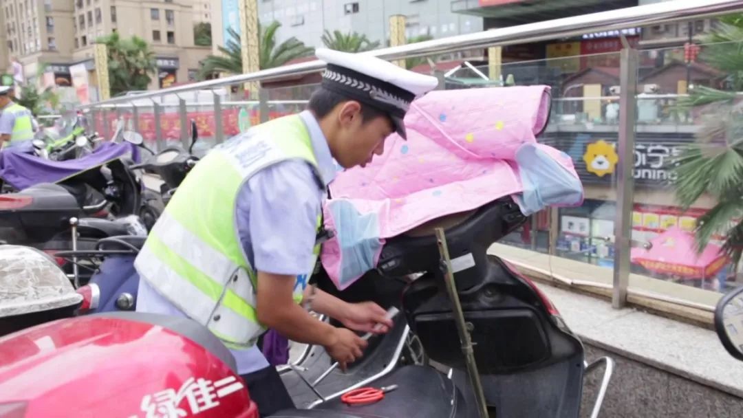 无休日 龙港交警队对辖区非法加装遮阳伞的进行整治