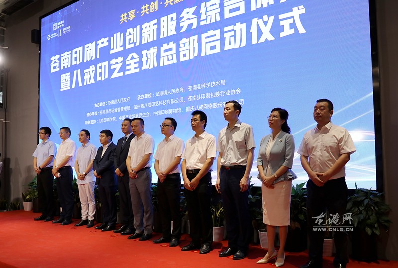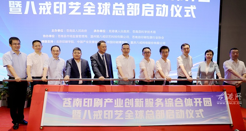 “共享 共创 共赢”。7月30日上午,苍南印刷产业创新服务综合体开园仪式暨八戒印艺全球总部启动仪式举行,市政府副秘书长戴旭强、县委副书记、县长郑建忠分别致辞;中国产业发展促进会秘书长李小军、北京印刷学院党委常委刘尊忠,重庆八戒网络创始人、CEO朱明跃及副县长李上清、龙港镇长陈显宏等出席活动。