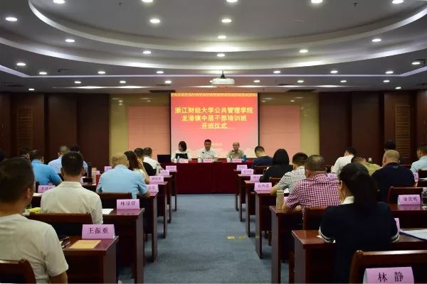 7月2日下午,龙港镇中层干部培训班在浙江财经大学正式开班,参加这次培训班的有各部门负责人、各社区书记或主任及其他中层干部、部分年轻干部, 浙江财经大学公共管理学院院长郭剑鸣、镇委委员黄钦放出席开班仪式。