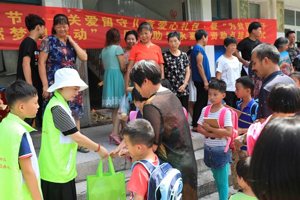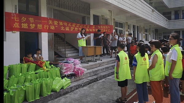 仪式有永嘉县鹤盛镇片长兼蓬溪新村村长张理忠主持,党支部副书记谢修乾致欢迎词,苍南县仁爱志愿者服务中心介绍了“为贫困孩子点燃梦想行动”之助学圆梦救助项目,共青团鹤盛镇委员会书记周聪聪,苍南县仁爱志愿者服务中心理事长负责人为鹤盛镇蓬溪希望小学授牌,设立“为贫困孩子点燃梦想行动”仁爱助学永嘉站资助点,开展长期结对开展爱心助学活动,鹤盛镇蓬溪希望小学校长回赠送锦旗,共青团鹤盛镇委员会书记周聪聪作重要讲话,领导与志愿者给鹤盛镇蓬溪希望小学60名留守儿童、困境儿童发放爱心大礼包。