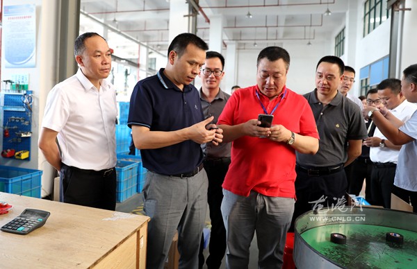 在联益线束有限公司,郑建忠一行深入企业生产车间,实地察看企业生产流程和企业管理,并与企业负责人亲切交流,详细了解企业发展规划和存在的困难。郑建忠鼓励企业要抓住机遇,增强产品市场竞争力,不断发展壮大企业,在未来发展中,要树立新目标,不断加大科技投入和科技创新,再接再厉,把企业做大做强。