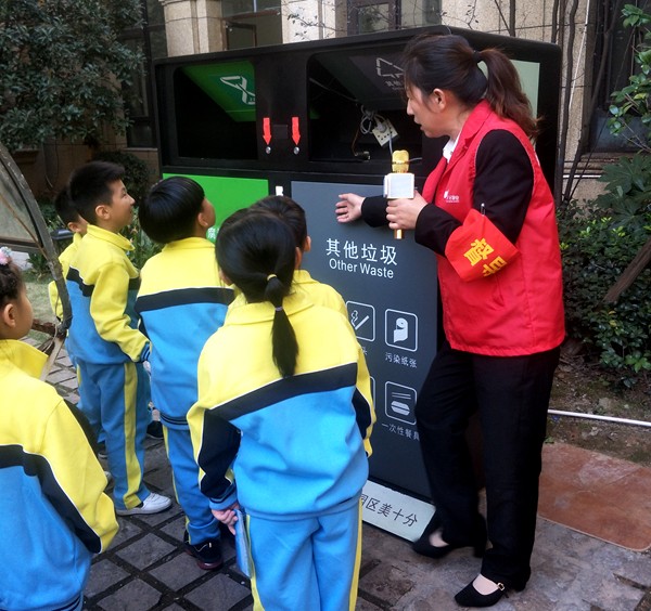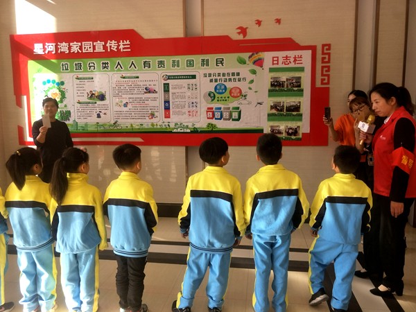 11月2日,一群穿着亮丽色彩貌似校服的孩子,来到星河湾小区。原来他们是来向小区工作人员学习垃圾分类知识。小区讲解员向这群“小客人”们讲解了小区为什么要进行垃圾分类?他们是怎么做的?做好垃圾分类有什么好处等一一做了介绍讲解。星河湾是按垃圾分类省级示范小区标准去实行的,孩子们通过寻找垃圾投放点和智能投放体验,让孩子们知道如何正确投放。同学们快乐参与体验收获不少知识,他们纷纷表示要保护环境,爱护家园,要争当小小志愿者。