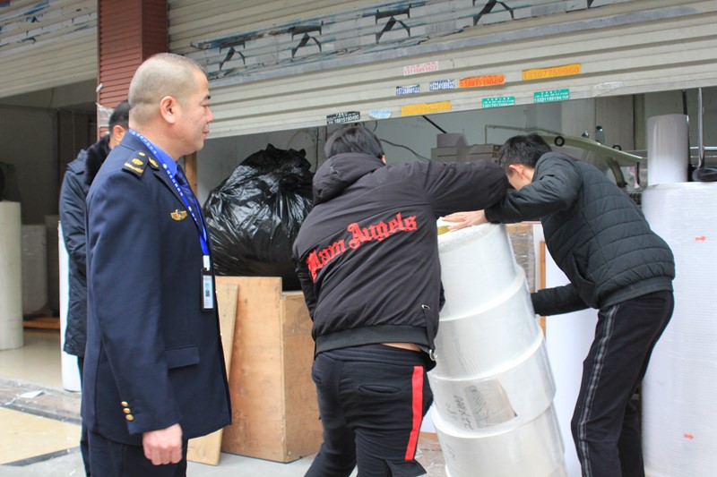 执法过程中,执法人员对将沿路违规堆放的纸张货物搬离街道,对少数城市管理意识较低、不理解工作的,执法人员耐心与之沟通,一方面告知其行为已违反了城市管理条例,应自觉遵守法律法规;另一方面也呼吁周围其他开店店主规范经营、积极响应市委市政府的号召,文明规范经营店铺。