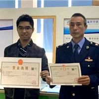 2020年1月3日上午,在龙港政务服务中心大厅内,龙港个体户杨某从市场监管局窗口工作人员手中接过了自己的营业执照,这是龙港撤镇设市后,龙港市市场监督管理局核发的第一张冠“龙港市”名称的营业执照,标志着我市以龙港名义提供各类市场主体登记和发证工作全面展开。
