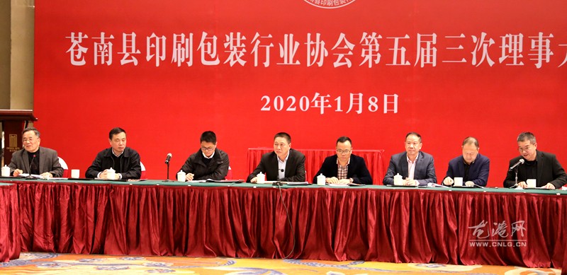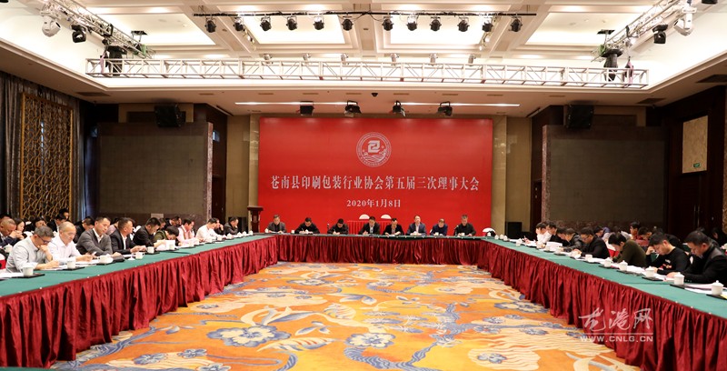 1月8日下午,苍南县印刷包装行业协会在龙港诚大饭店召开第五届三次理事大会,总结2019年协会工作,汇报2019年协会财务收支情况,审议2019年财务收支情况,部署2020年工作计划,并深入讨论行业今后发展大计。