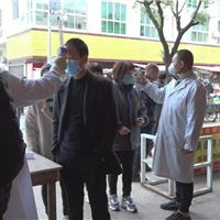 在西排农贸市场,记者看到不管是经营户还是前来买菜的市民都自觉佩戴口罩。入口处,居民自觉排队等待工作人员检测量体温。工作人员在巡查农贸市场时,看到经营户佩戴口罩不规范时都会一一指导纠正,提醒经营户一定要做好自身防护。
