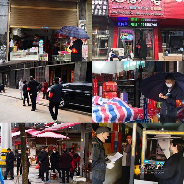 加强宣传、排查隐患。在做好指导、严查漏洞的基础上,基层委积极走村入户强化宣传,为村(社区、小区)自为战排隐患、扫盲点。连日来,基层委走访检查9个片区76个村社,发现115个人员聚集现象并积极劝散72个,移交属地片区43个;发现69个沿街店铺(除生活必须物资供应、药店、农贸市场外)处于营业状态,移交职能部门予以执法关停。与此同时,积极宣传戴口罩、不串门、不聚集等防疫知识和用气、用电、用火等安全知识。