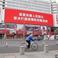 2月1日,北京一商场户外电子屏幕循环播放防控疫情宣传语。中新社记者 韩海丹 摄