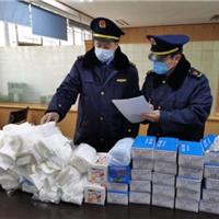 △1月27日,兰溪市市场监管局执法人员清点问题口罩。浙江省市场监管局供图