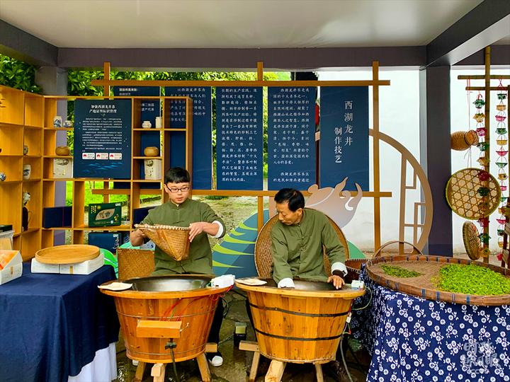 西湖龙井以“色绿、香郁、味甘、形美”著称于世,这是制作技艺展示区。(总台央视记者段德文拍摄)