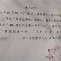 接警后,110民警立即出警到现场,在该房402房间内发现一男子已身亡,房间内有臭味。