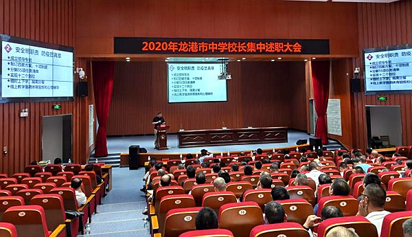 2020年中小学校长集中述职大会于7月22日、23日两天,在龙港中学先后举行了中学组、小学组集中述职,社会事业局党委书记、局长丁云勇等局党委领导、相关科室中层干部、各学校领导班子参加大会。