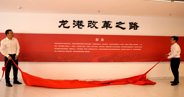 在龙港撤镇设市改革一周年来临之际, 为充分展现我市经济社会和城乡面貌发生的深刻变化,进一步凝聚改革的向心力、汇聚发展的正能量,9月24日上午,“龙港改革之路”大型展览举行了开幕仪式,市委书记郑建忠,市委常委、市委宣传统战部部长王辉球共同为展览揭幕,市委常委、市委基层治理委员会主任陈显宏,副市长赖先进等领导出席仪式。