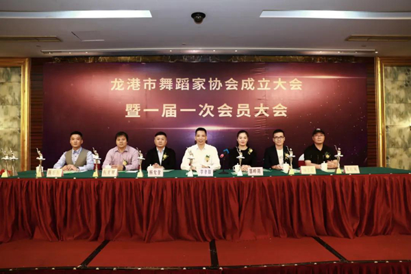 成立大会在庄严的国歌声中拉开序幕,浙江省舞蹈家协会副主席、温州市舞蹈家协会主席邵吟筠致贺词。 大会听取了《筹备工作报告》,审议了《龙港市舞蹈家协会章程》、《龙港市舞蹈家协会财务管理制度》。龙港社会事业局基层建设科科长杨光明宣读决定书和批复文件。