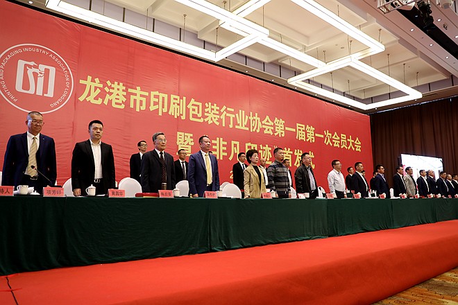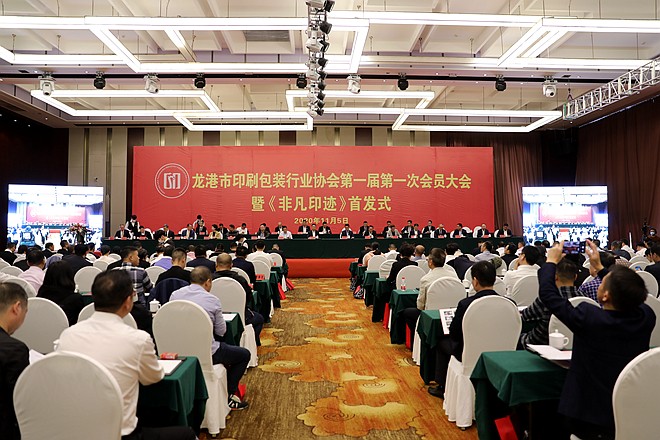 11月5日下午,龙港市印刷包装行业协会第一届第一次会员大会暨《非凡印迹》首发仪式在诚大饭店隆重召开。市人大常委会副主任苏中杰,副市长黄振国、政协副主席朱诗力等领导到会指导。龙港印协第一届理事会理事、会员,各兄弟协会代表、嘉宾等500余人出席会议。大会选举吴作榜同志为协会会长。苏中杰为市印刷包装行业协会授牌。