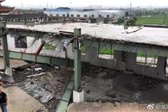 5月30日,在龙港镇平等社区孙店村, 2台炮头机、2台切割机、一台大型吊机的轰鸣声响起,经过龙港综合行政执法局工作人员两天连续拆除,一座二层顶风兴建的违章建筑厂房轰然倒塌,占地面积480平方米,还出动无人机现场全监督拍摄记录。