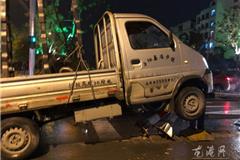 今晚,细雨绵绵,本网小编路过龙港镇沿江路,听到一声轰隆作响,原来是一辆平阳小车撞上沿江路中间隔离护栏,爬上了警示桩,车头底部卡在警示桩上动不了,所幸无人受伤。