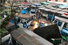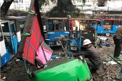为了进一步加强残疾车违法营运整治。12月15日,苍南县公安局龙港交警队对查扣的80辆非法改装残疾车进行集中切割销毁处理。