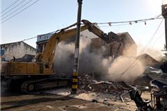 今天,龙港镇江口村城中村A01地块改造项目正式启动大片区拆除。