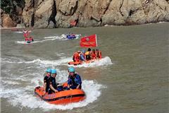 “各艇注意,接海上搜救中心指令,石砰渔港内湖外海约500米处有1名船民不慎落水,请需要出动救援,鉴于今天初一,当前潮高浪急,请你们迅速赶往事发现场实施有效救援……
