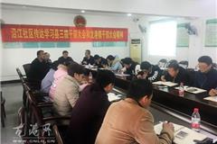 沿江社区召开全体机关干部工作例会,社区书记王振重主持学习"县三级干部大会精神"和"龙港干部大会精神",认真学习县委书记黄荣定讲话精神、县委常委、镇委书记陈为来重要讲话、陈显宏镇长提出的"12510"目标任务。