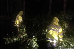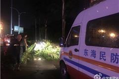 昨天晚上,苍南县东海民防救援中心机动大队20名值班队员正在备勤,截止12点30分,已出动三批次,四辆越野车,携带电锯分别在龙金大道仪邦工业园前、沿江路10号前、西四街倒在路边5株树木进行移交清理;因车手刹没刹,一辆奔驰斯玛特被大风吹到江湾路路中间,严重存在安全隐患,队员发现后立即下车将斯玛特小车推到人行道上,用石块临时固定住后轮,防止车后退,并通过114通知车主处置。
