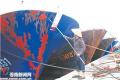 进入伏季休渔期,船闲人不闲,渔民们忙于保养船舶。