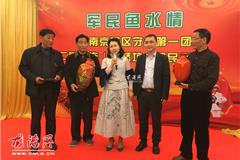 昨天,来自原南京军区守备一团二营五连(倒桥坑)百名老兵云集龙港欢聚一堂,载歌载舞, 共话军民鱼水情。龙港镇委副书记、镇长陈为来致辞,苍南县盐务局局长郑恩合与金乡镇(炎亭镇)倒桥坑村民、民兵代表一起出席联谊活动。