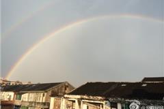 昨日下午,经历大暴雨的洗礼后,龙港上空雨过天晴出现了绚丽的“双彩虹”的美景。“双彩虹”大概持续20多分钟,远远望去十分壮美。