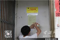为落实县安全隐患清剿百日攻坚行动,今天上午,龙跃社区派出安全管理人员开展出租屋、店连屋整治,对龙港第一菜场街一带不符合出租条件的通体房,给予发放严禁租赁牌,对店连屋商户发放限期整改通知书。