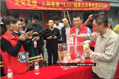 4月19日,由苍南县网络界人士联谊会、龙港镇慈善总会、龙港网主办,龙港镇综合执法大队、三味书坛 、苍南县东海民防救援中心协办的"4.17"钱库火灾事故募捐活动今天上午9点至晚上21点止在龙港镇龙跃路工行门口开展爱心募捐活动,现场共收到捐款141300元。