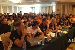 为期4天的2014温州国际山地户外运动挑战赛今天上午在温州体育中心拉开序幕。来自德国、瑞典、美国、俄罗斯、澳大利亚、新西兰、英国、法国、瑞士及东道主中国等19个国家的29支专业运动队共116名运动员参赛,其中国外运动队19支、国内运动队10支。此次赛事设直排轮滑、皮划艇、山地车、越野跑、速降、溜索、楼降、桥降、爬绳网、挖海沙、逃生墙、定向越野等十二个比赛项目。